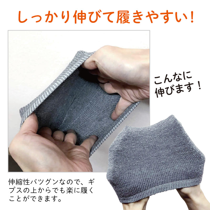 仕事や学校に行かれる際にもギブスの上から履けるので汚れ防止・目立つのを防止してくれるのでとても便利。